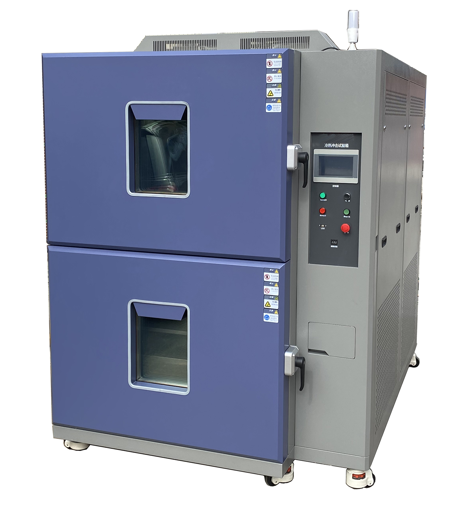 分別獨(dú)立的高溫腔和低溫腔,能夠?qū)崿F(xiàn)快速的溫度切換,提高了試驗(yàn)效率。每個(gè)腔體內(nèi)都有獨(dú)立的加熱和制冷系統(tǒng),以快速達(dá)到測(cè)試條件。