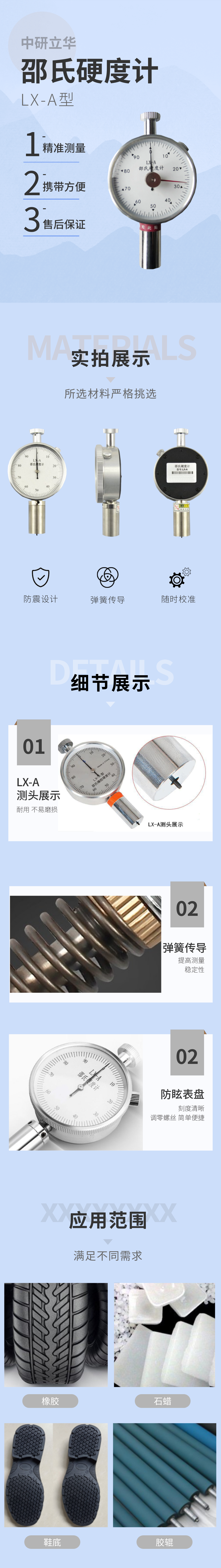 用途:LX-A為邵氏A型橡膠硬度計(jì)。主要用于測量軟質(zhì)材料。如天然橡膠、合成橡膠(如密封件、輪胎、膠輥、電線電纜、護(hù)套等),軟塑料(醫(yī)療器具等),人造皮革以及其它相關(guān)化工制品的硬度測量。